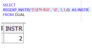 * REGEXP_INSTR : 문자열을 검색하고 일치항목의 위치를 반환합니다.