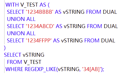 * REGEXP_LIKE : LIKE 연산과 비슷하며 정규식 패턴을 검색합니다.